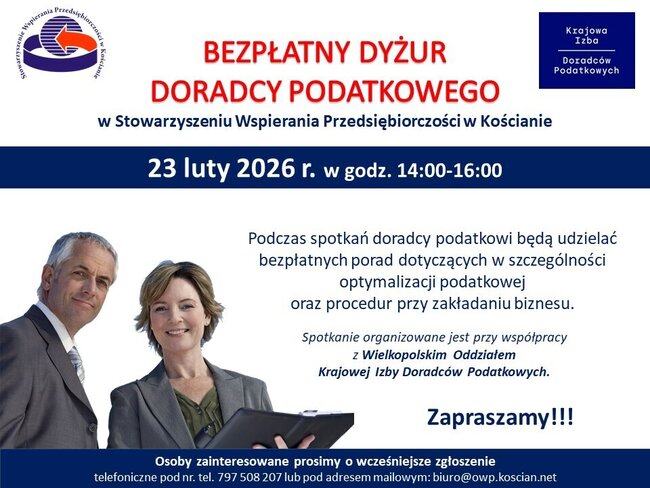 Spotkanie organizowane przy współpracy z Wielkopolskim Oddziałem Krajowej Izby Doradców Podatkowych.
