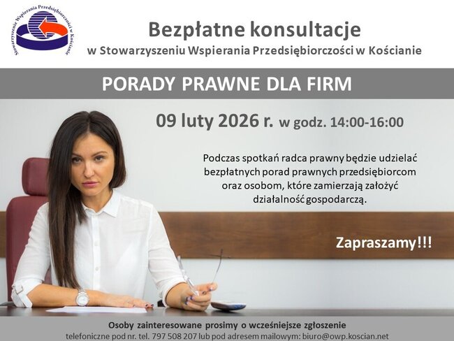 Bezpłatne porady prawne dla przedsiębiorców oraz osób, które zamierzają założyć działalność gospodarczą.