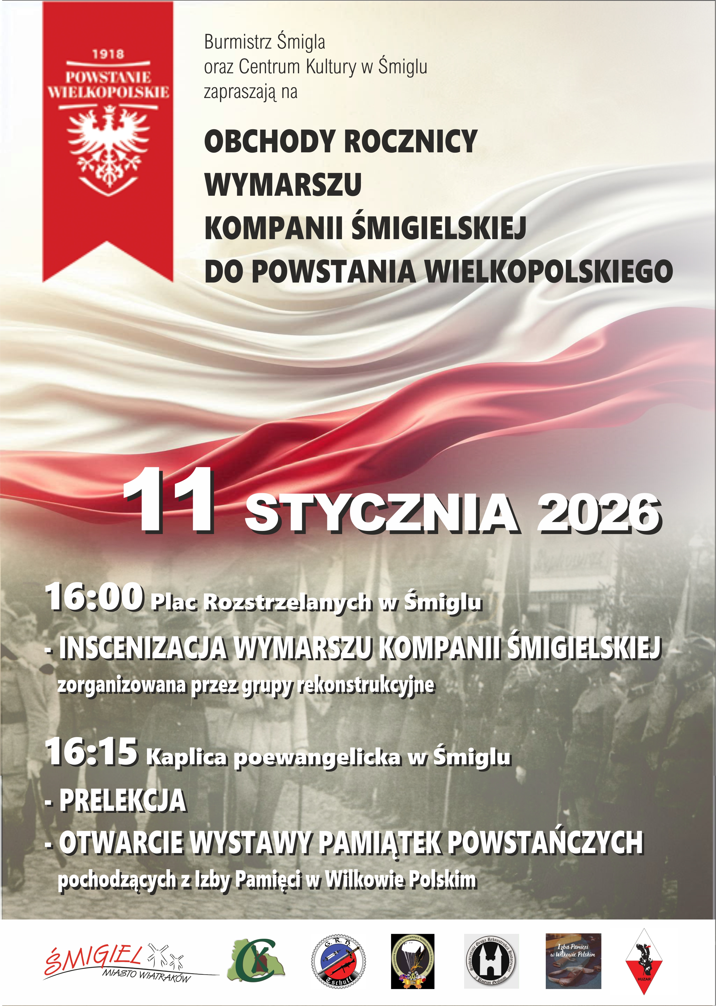 11 stycznia 2026 r. w Śmiglu odbędą się obchody upamiętniające rocznicę wymarszu Kompanii Śmigielskiej do walk w Powstaniu Wielkopolskim. Wydarzenie będzie okazją do oddania hołdu uczestnikom powstania oraz przypomnienia lokalnej historii.