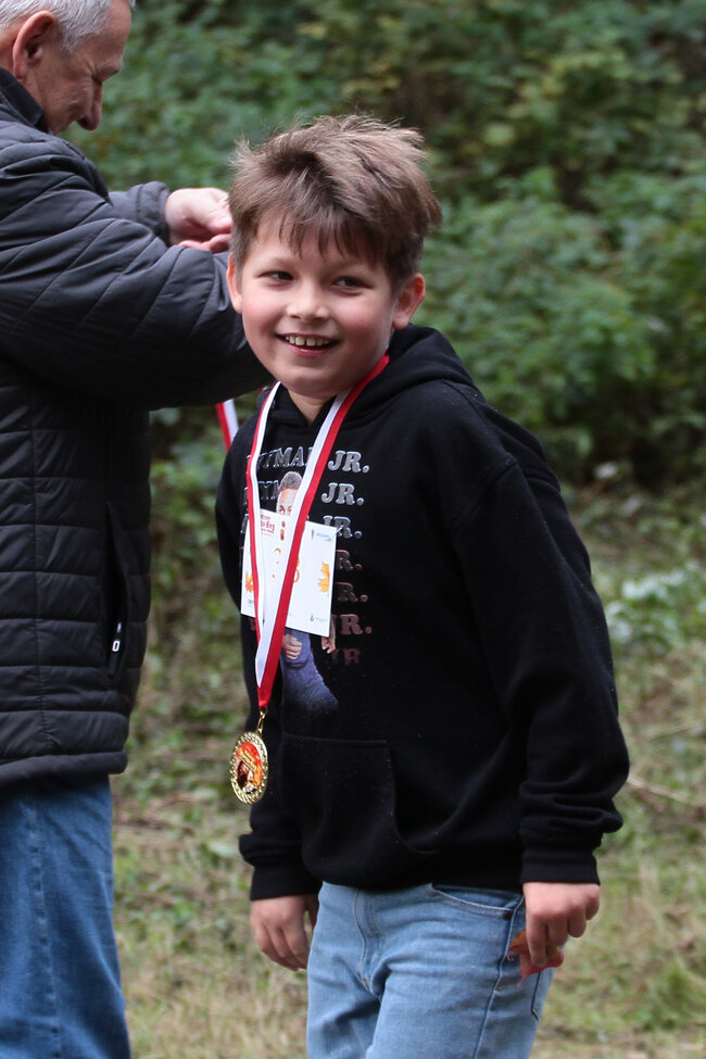 W rodzinnym marszobiegu nagrodą za dotarcie do mety były okolicznościowe medale, a także słodki poczęstunek.